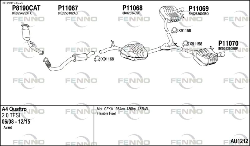 AUDI A4 B8 Avant (8K5) 2.0 TFSI flexible fuel quattro - Výfukový systém - kompletní