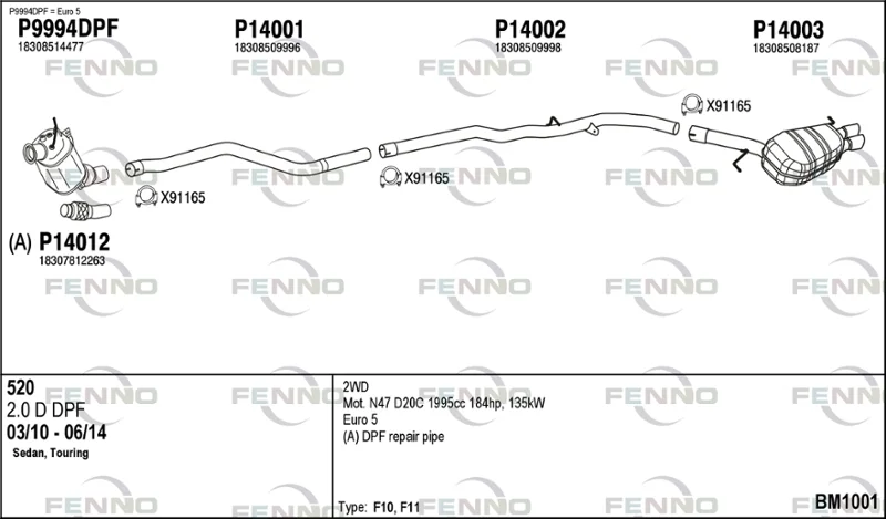 BMW 5 Touring (F11) 520 d - Výfukový systém - kompletní od 6/2010 do 6/2014, 1995 ccm, 135 kW, 184 hp, N47 D20 C, kombi