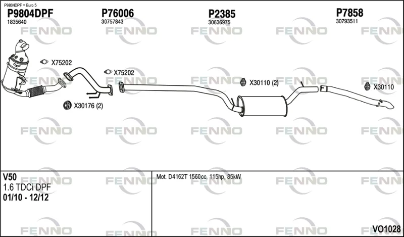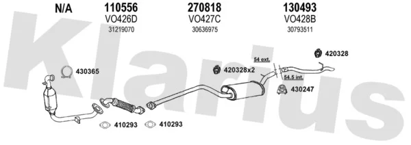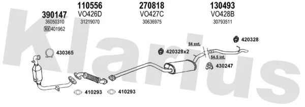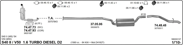 VOLVO V50 (545) D2 - Výfukový systém - kompletní od 1/2010 do 12/2012, 1560 ccm, 84 kW, 114 hp, D 4162 T, kombi