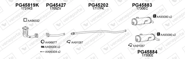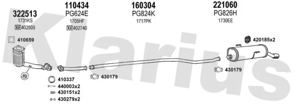 PEUGEOT 206+ (2L_, 2M_) 1.4 i (2LKFWA, 2MKFWA) - Výfukový systém - kompletní od 1/2009 do 8/2013, 1360 ccm, 55 kW, 75 hp, KFW (TU3A), Šikmá zadní část