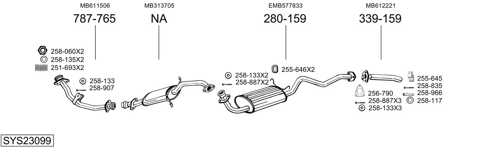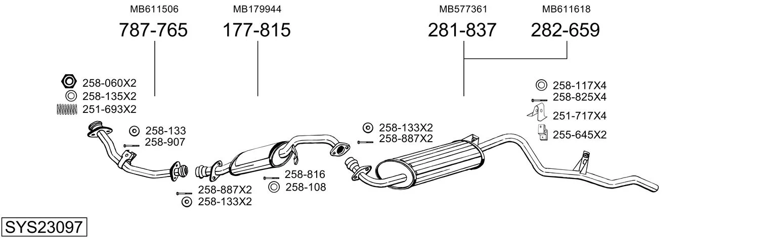 MITSUBISHI PAJERO I (L04_G, L14_G) 2.5 TD (L044G, L049G) - Výfukový systém - kompletní od 4/1987 do 12/1991, 2477 ccm, 64 kW, 87 hp, 4D56-T, uzavřený terénní vůz