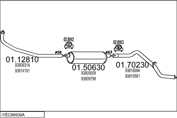 IVECO DAILY II Krabice 35-12 (13114131, 13114204, 13114211, 13114212, 13114217,... - Výfukový systém - kompletní od 1/1990 do 4/1996, 2499 ccm, 85 kW, 116 hp, 8140.47, 8140.47S, Krabice