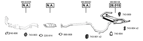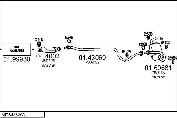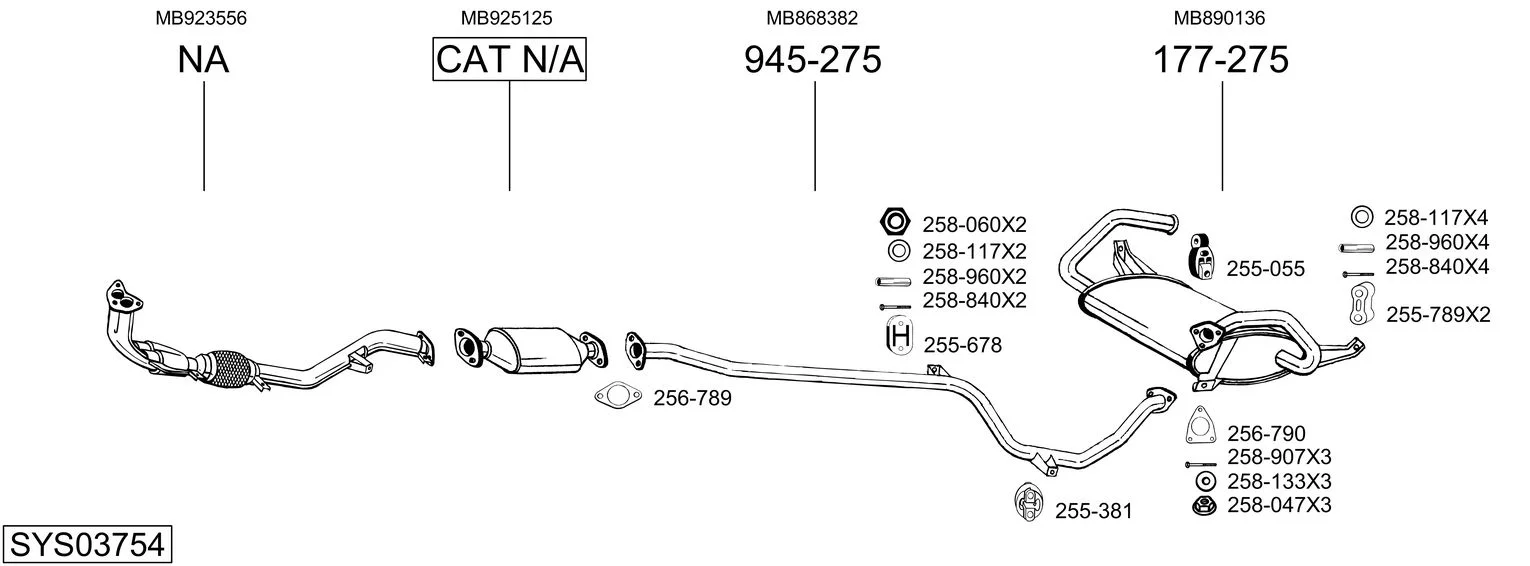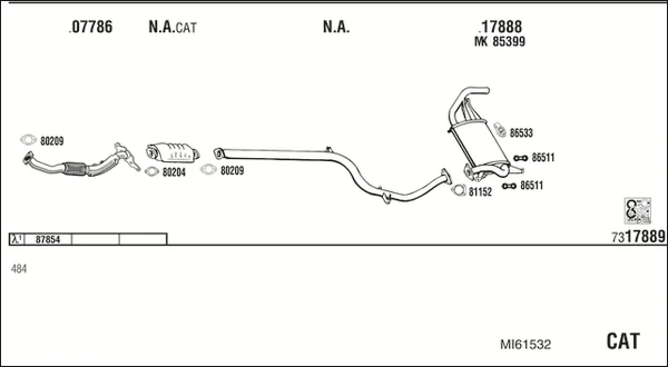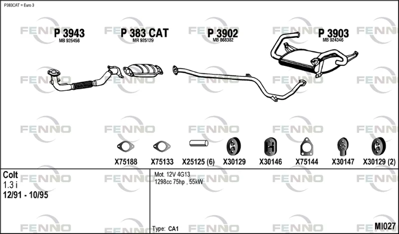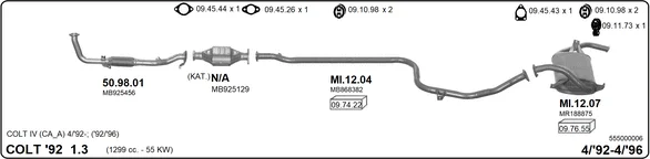 MITSUBISHI COLT IV (CA_A) 1.3 GLi 12V (CA1A) - Výfukový systém - kompletní od 4/1992 do 4/1996, 1299 ccm, 55 kW, 75 hp, 4G13 (12V), Šikmá zadní část