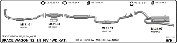 MITSUBISHI SPACE WAGON (N3_W, N4_W) 1.8 4WD (N41W) - Výfukový systém - kompletní od 10/1991 do 10/1998, 1834 ccm, 90 kW, 122 hp, 4G93 (SOHC 16V), velkoprostorová limuzína