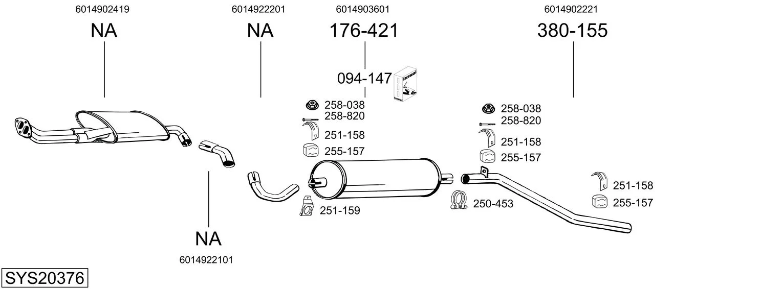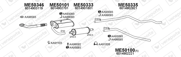 MERCEDES-BENZ T1/TN valník/podvozek 410 (611.017, 611.018) - Výfukový systém - kompletní od 8/1982 do 6/1995, 2298 ccm, 77 kW, 105 hp, M 102.945, valník/podvozek