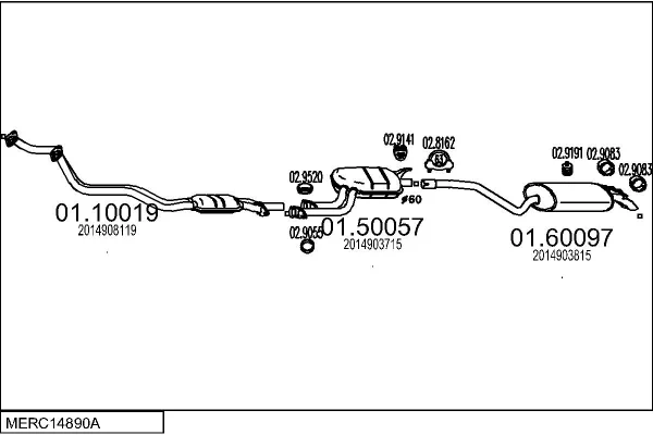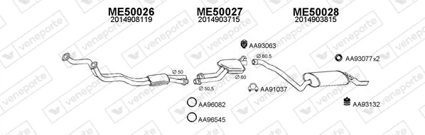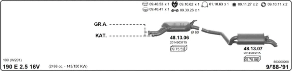 MERCEDES-BENZ 190 (W201) E 2.5-16 (201.035) - Výfukový systém - kompletní od 9/1988 do 8/1993, 2498 ccm, 150 kW, 204 hp, M 102.990, limuzína