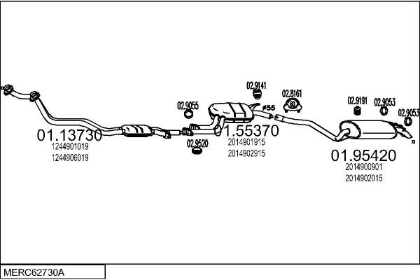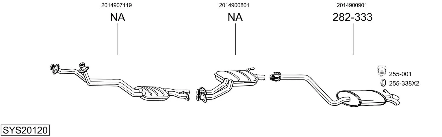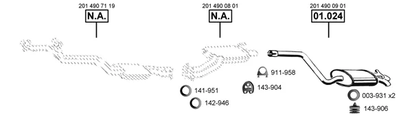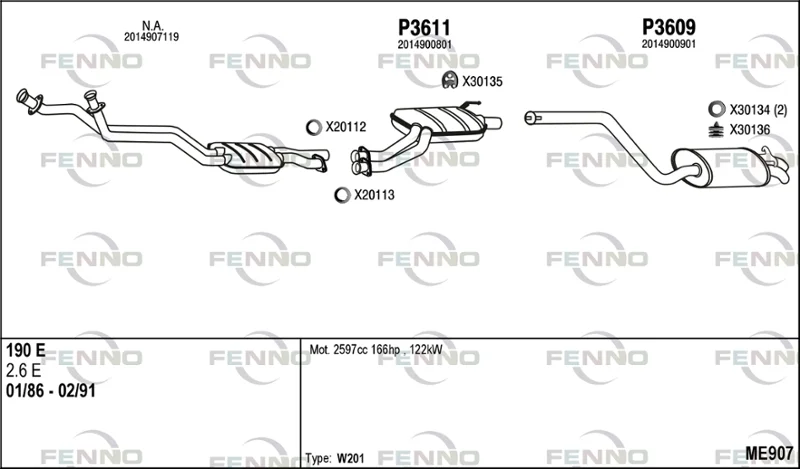 MERCEDES-BENZ 190 (W201) E 2.6 - Výfukový systém - kompletní od 9/1986 do 12/1989, 2597 ccm, 122 kW, 166 hp, M 103.942, limuzína