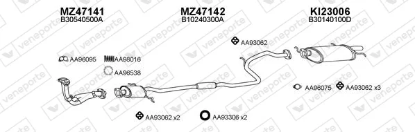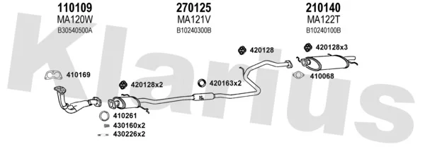 MAZDA 121 I (DA) 1.1 (DA101) - Výfukový systém - kompletní od 10/1987 do 10/1990, 1139 ccm, 42 kW, 57 hp, B1, B116, Šikmá zadní část