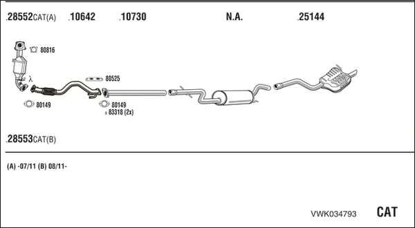 VW GOLF VI Variant (AJ5) 1.2 TSI - Výfukový systém - kompletní od 7/2010 do 7/2013, 1197 ccm, 63 kW, 86 hp, CBZA, kombi