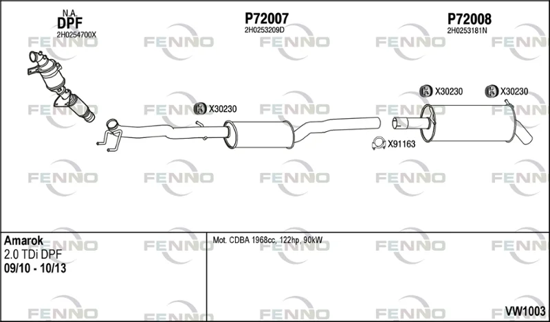 VW AMAROK (2HA, 2HB, S1B, S6B, S7A, S7B) 2.0 TDI 4motion - Výfukový systém - kompletní od 9/2010 do 10/2013, 1968 ccm, 90 kW, 122 hp, CDBA, CNFA, pick-up