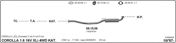 TOYOTA COROLLA Liftback (_E9_) 1.6 (AE92) - Výfukový systém - kompletní od 8/1989 do 4/1992, 1587 ccm, 77 kW, 105 hp, 4A-FE, Šikmá zadní část
