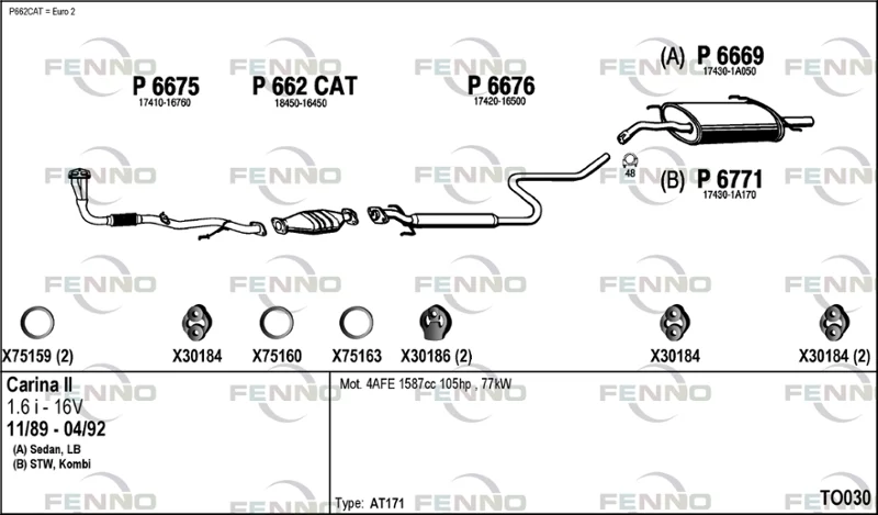 TOYOTA CARINA V limuzína (_T17_) 1.6 (AT171_, AT171) - Výfukový systém - kompletní od 12/1987 do 3/1992, 1587 ccm, 75 kW, 102 hp, 4A-FE, limuzína