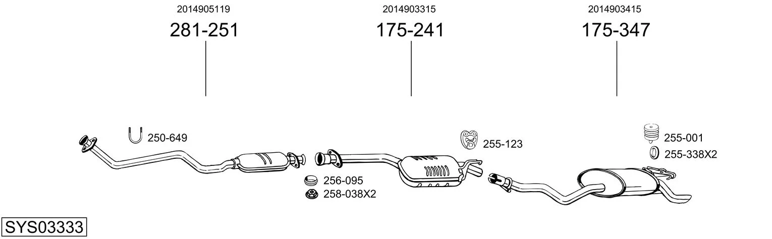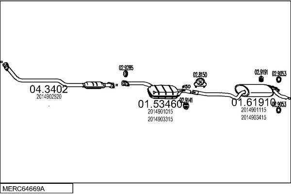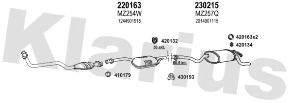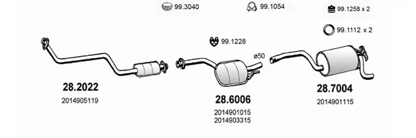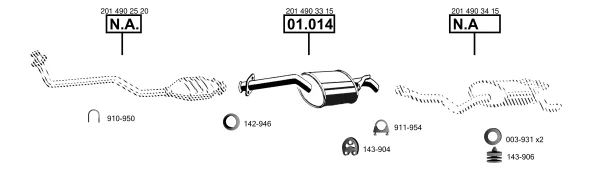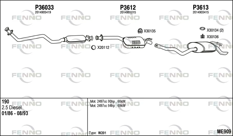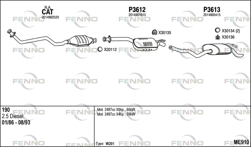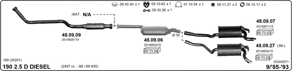 MERCEDES-BENZ 190 (W201) D 2.5 (201.126) - Výfukový systém - kompletní od 8/1989 do 8/1993, 2497 ccm, 69 kW, 94 hp, OM 602.911, limuzína