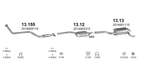 MERCEDES-BENZ 190 (W201) D 2.5 (201.126) - Výfukový systém - kompletní od 8/1989 do 8/1993, 2497 ccm, 69 kW, 94 hp, OM 602.911, limuzína