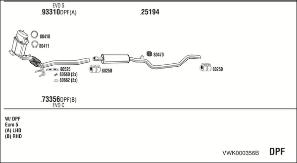 VW PASSAT B7 Variant (365) 2.0 TDI - Výfukový systém - kompletní od 8/2010 do 12/2014, 1968 ccm, 103 kW, 140 hp, CFFB, kombi