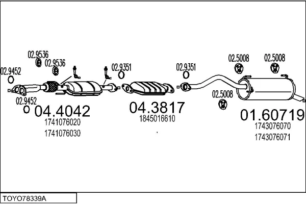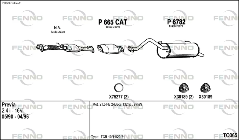 TOYOTA PREVIA I (_R1_, _R2_) 2.4 (TCR11_, TCR10_, TCR10R, TCR11R) - Výfukový systém - kompletní od 5/1990 do 8/2000, 2438 ccm, 97 kW, 132 hp, 2TZ-FE, velkoprostorová limuzína