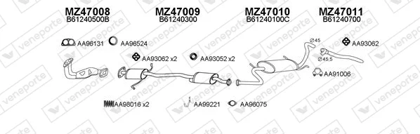 MAZDA 323 III Hatchback (BF) 1.6 GT (BF106) - Výfukový systém - kompletní od 8/1985 do 8/1993, 1597 ccm, 77 kW, 105 hp, B6 (SOHC), Šikmá zadní část