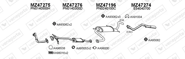 MAZDA 323 III Station Wagon (BW) 1.7 D (BW7W) - Výfukový systém - kompletní od 11/1986 do 10/1989, 1720 ccm, 42 kW, 57 hp, PN26, PN54, kombi