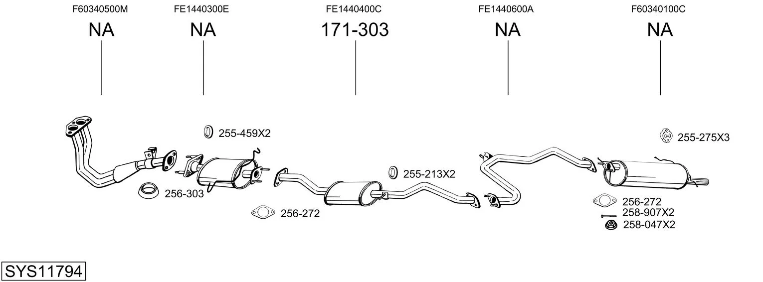 MAZDA 626 II (GC) 1.6 (GC1061) - Výfukový systém - kompletní od 11/1982 do 6/1987, 1587 ccm, 59 kW, 80 hp, F6, limuzína