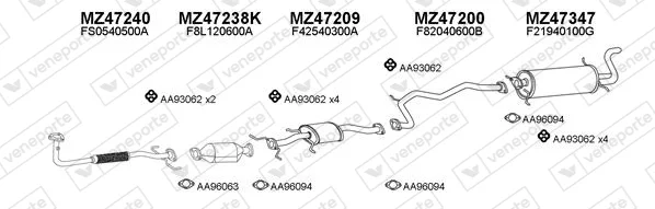 MAZDA 626 III Station Wagon (GV) 2.0 (GVEW) - Výfukový systém - kompletní od 10/1988 do 9/1997, 1998 ccm, 66 kW, 90 hp, FE (8V), kombi