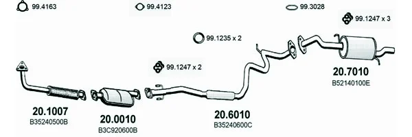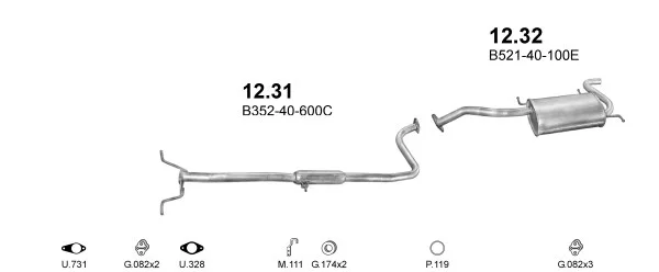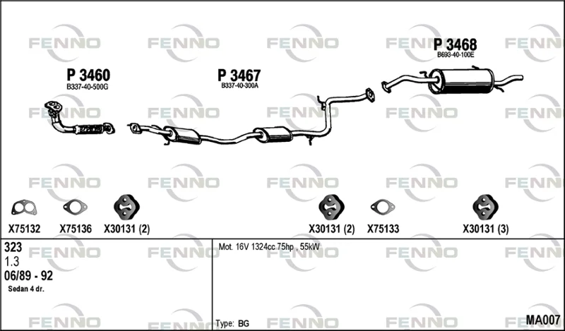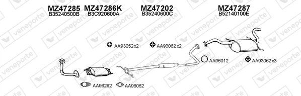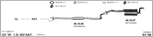 MAZDA 121 II (DB) 1.3 i 16V (DB3PA) - Výfukový systém - kompletní od 11/1990 do 3/1996, 1324 ccm, 53 kW, 72 hp, B3C9, limuzína
