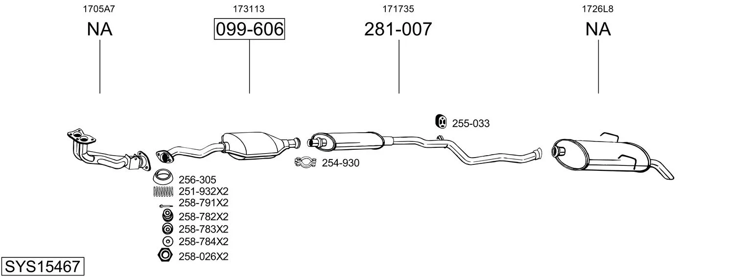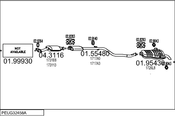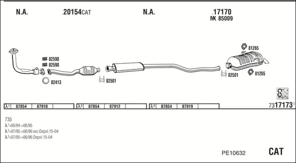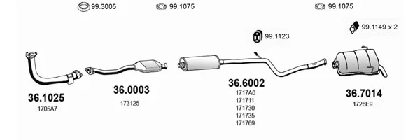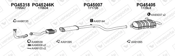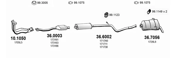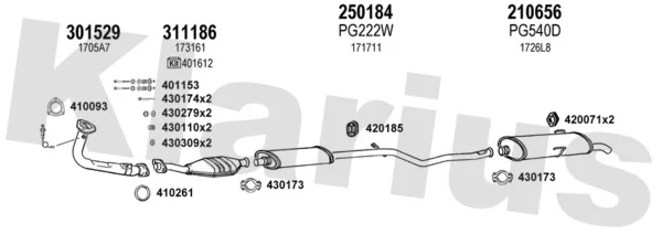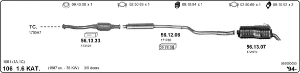 PEUGEOT 106 I (1A, 1C) 1.6 - Výfukový systém - kompletní od 11/1994 do 4/1996, 1587 ccm, 76 kW, 103 hp, NFY (TU5J2), Šikmá zadní část