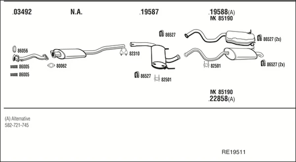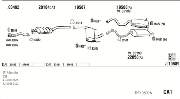 RENAULT LAGUNA I (B56_, 556_) 2.0 (B56C/H/N) - Výfukový systém - kompletní od 11/1993 do 3/2001, 1998 ccm, 83 kW, 113 hp, F3R 722, F3R 723, Šikmá zadní část