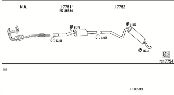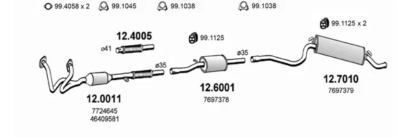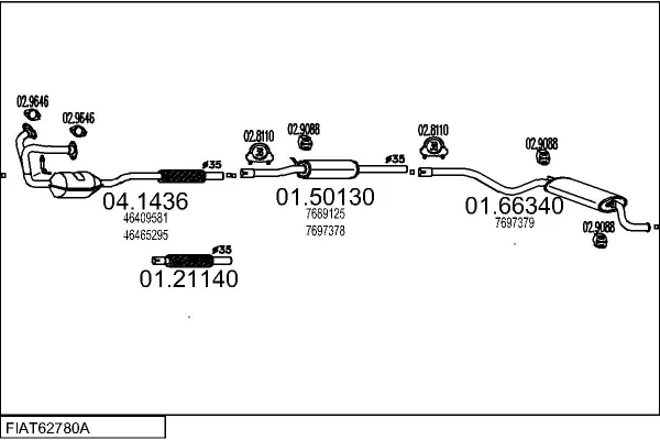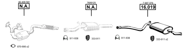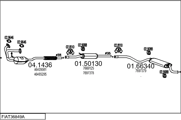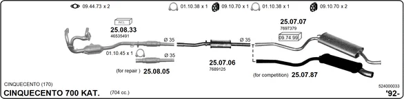 FIAT CINQUECENTO (170_) 0.7 i (170AD) - Výfukový systém - kompletní od 7/1994 do 1/1998, 704 ccm, 22 kW, 30 hp, 170 A.046, Šikmá zadní část