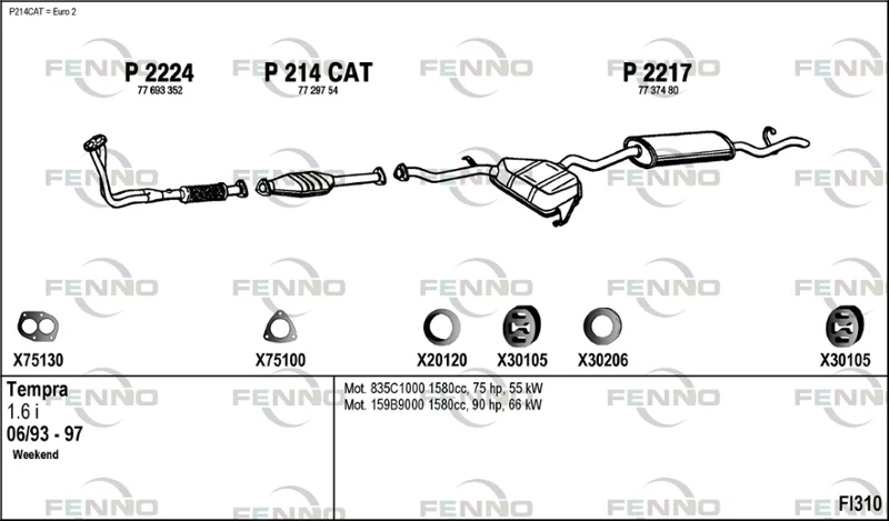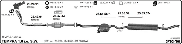 FIAT TEMPRA S.W. (159_) 1.6 i.e. (159.AJ) - Výfukový systém - kompletní od 6/1994 do 8/1996, 1581 ccm, 66 kW, 90 hp, 159 B9.000, kombi