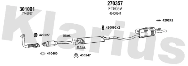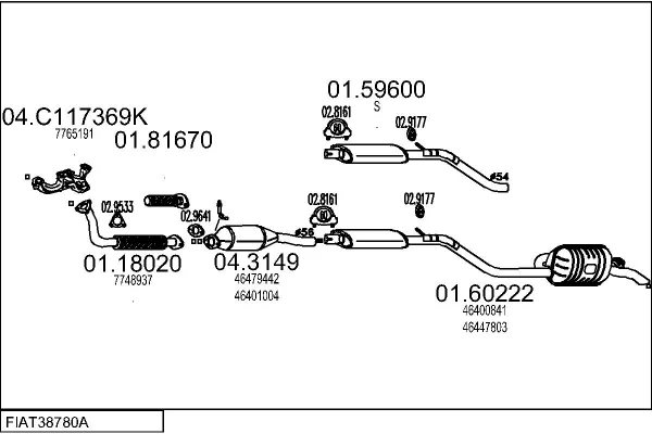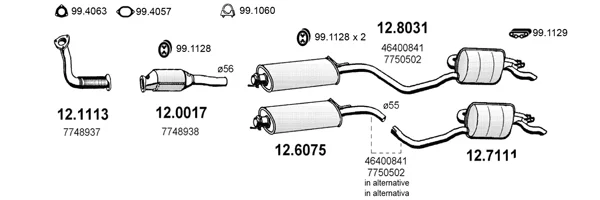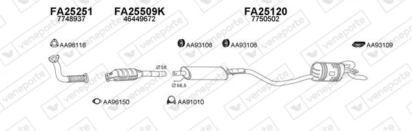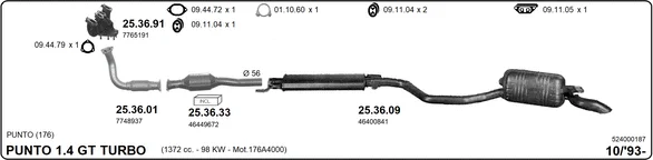 FIAT PUNTO (176_) 1.4 GT Turbo (176AD_) - Výfukový systém - kompletní od 10/1993 do 3/1997, 1372 ccm, 98 kW, 133 hp, 176 A4.000, Šikmá zadní část
