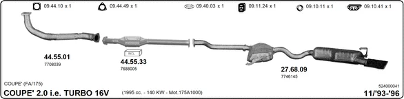 FIAT COUPE (175_) 2.0 16V Turbo - Výfukový systém - kompletní od 11/1993 do 8/1996, 1995 ccm, 140 kW, 190 hp, 175 A1.000, kupé