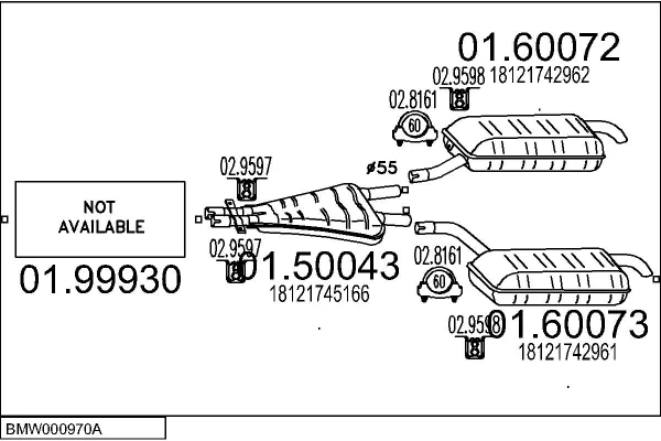 BMW 7 (E38) 740 i, iL - Výfukový systém - kompletní od 3/1994 do 2/1996, 3982 ccm, 210 kW, 286 hp, M60 B40 (408S1), limuzína