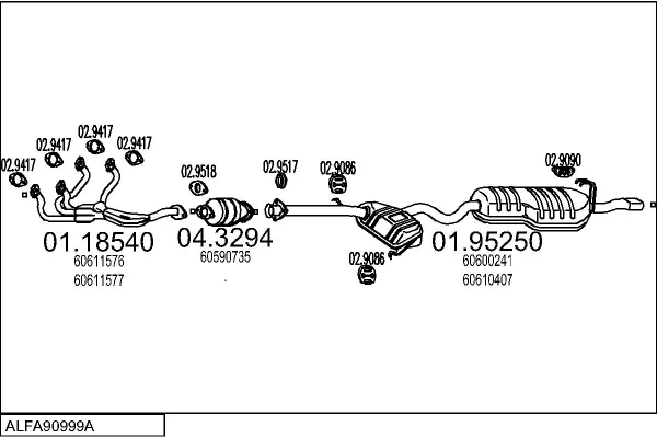 ALFA ROMEO 145 (930_) 1.6 i.e. (930.A2) - Výfukový systém - kompletní od 10/1994 do 12/1996, 1596 ccm, 76 kW, 103 hp, AR 33201, Šikmá zadní část