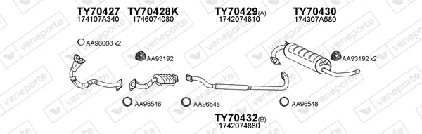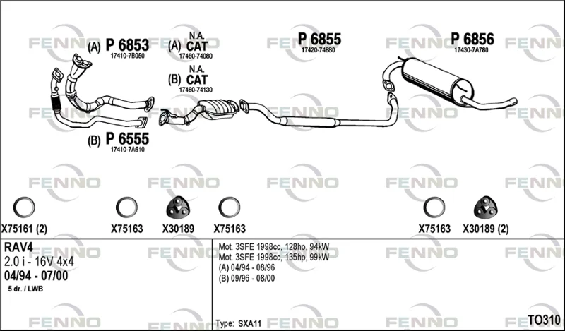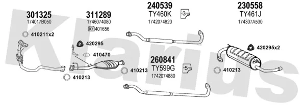 TOYOTA RAV 4 I (_A1_) 2.0 4WD (SXA10, SXA11) - Výfukový systém - kompletní od 6/1994 do 6/2000, 1998 ccm, 95 kW, 129 hp, 3S-FE, SUV