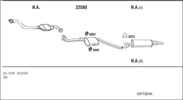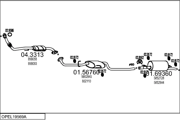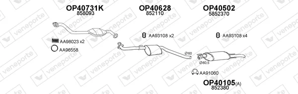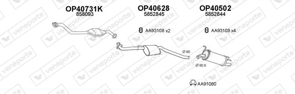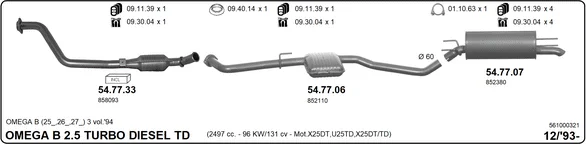 OPEL OMEGA B (V94) 2.5 TD (F69, M69, P69) - Výfukový systém - kompletní od 4/1994 do 7/2003, 2498 ccm, 96 kW, 130 hp, 25 DT, U 25 DT, U 25 TD, X 25 DT, X 25 TD, limuzína