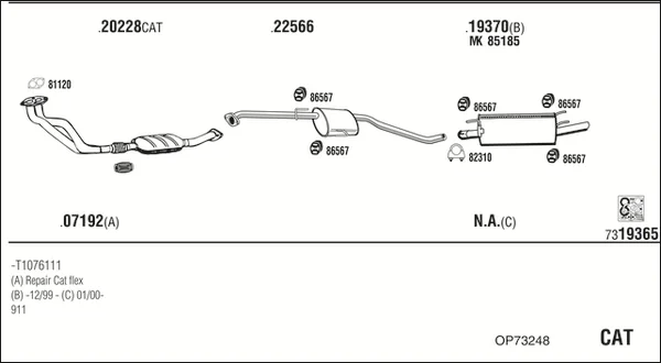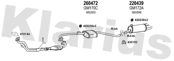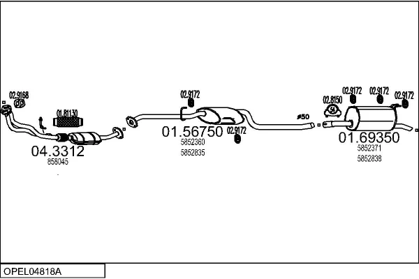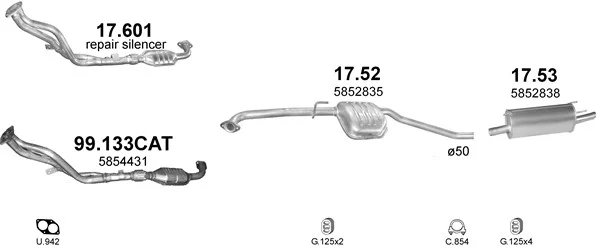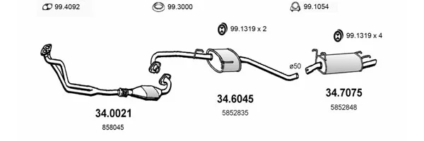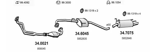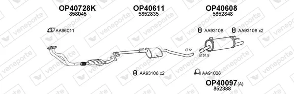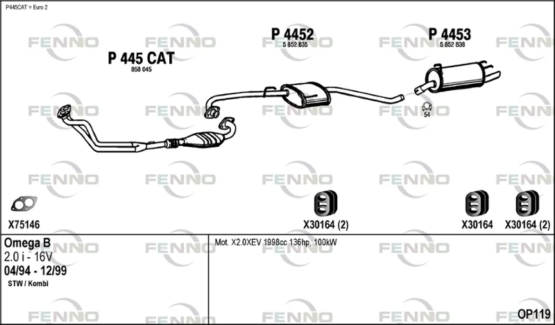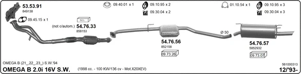 OPEL OMEGA B kombi (V94) 2.0 16V (F35, M35, P35) - Výfukový systém - kompletní od 3/1994 do 9/1999, 1998 ccm, 100 kW, 136 hp, X 20 XEV, kombi