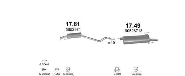 OPEL ASTRA F Šikmá zadní část (T92) 1.7 TD (F08, M08, F68, M68) - Výfukový systém - kompletní od 11/1994 do 1/1998, 1699 ccm, 50 kW, 68 hp, X 17 DTL, Šikmá zadní část