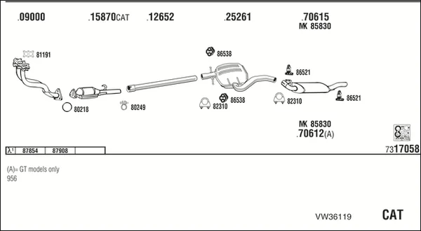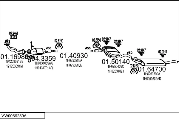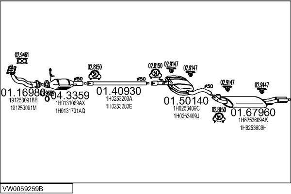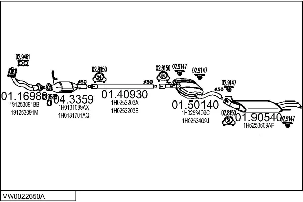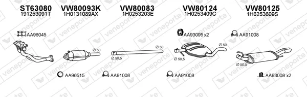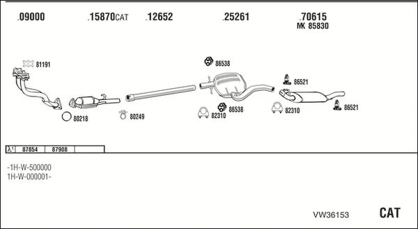 VW GOLF III (1H1) 1.6 - Výfukový systém - kompletní od 7/1995 do 8/1997, 1595 ccm, 74 kW, 101 hp, AEK, AFT, AKS, Šikmá zadní část