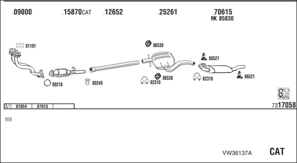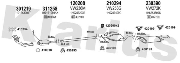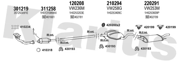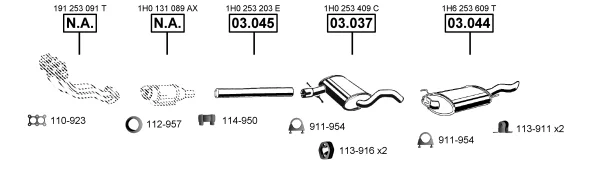 VW GOLF III Cabriolet (1E7) 1.6 - Výfukový systém - kompletní od 10/1994 do 2/1998, 1595 ccm, 74 kW, 101 hp, AEK, AFT, AKS, Kabriolet