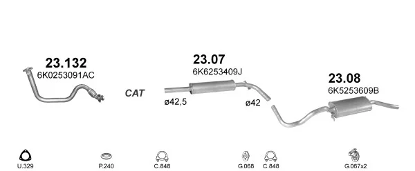 SEAT CORDOBA (6K1, 6K2) 1.4 i - Výfukový systém - kompletní od 6/1994 do 10/2002, 1389 ccm, 44 kW, 60 hp, ABD, AEX, AKK, AKV, ANW, APQ, AUD, limuzína