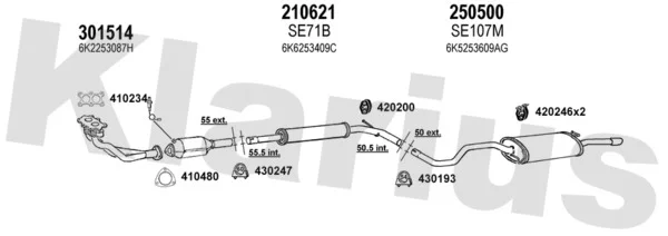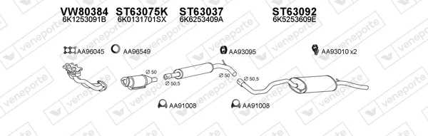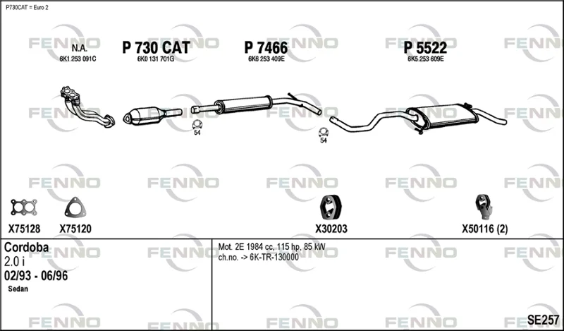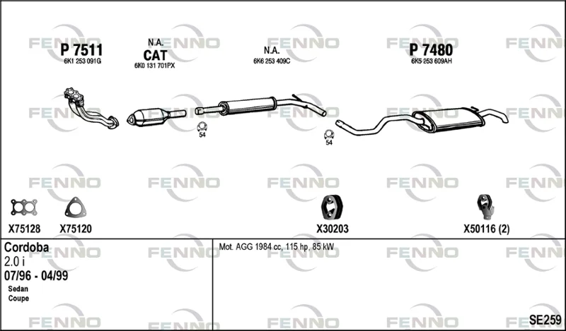 SEAT CORDOBA (6K1, 6K2) 2.0 i - Výfukový systém - kompletní od 2/1993 do 6/1999, 1984 ccm, 85 kW, 115 hp, 2E, AGG, limuzína