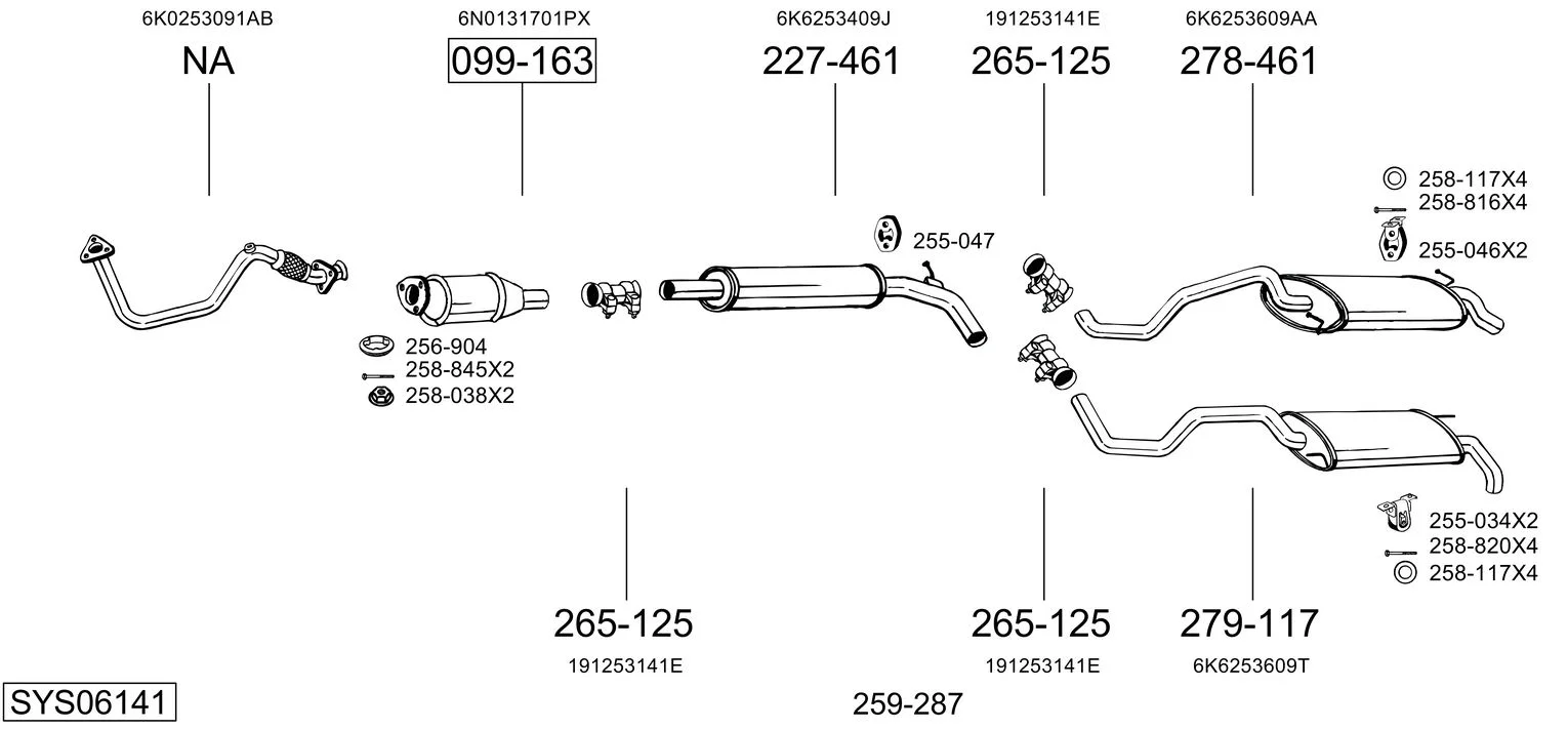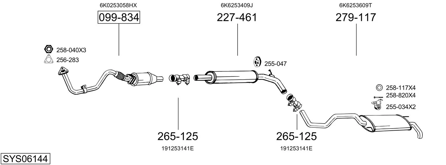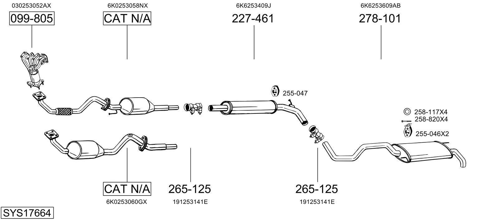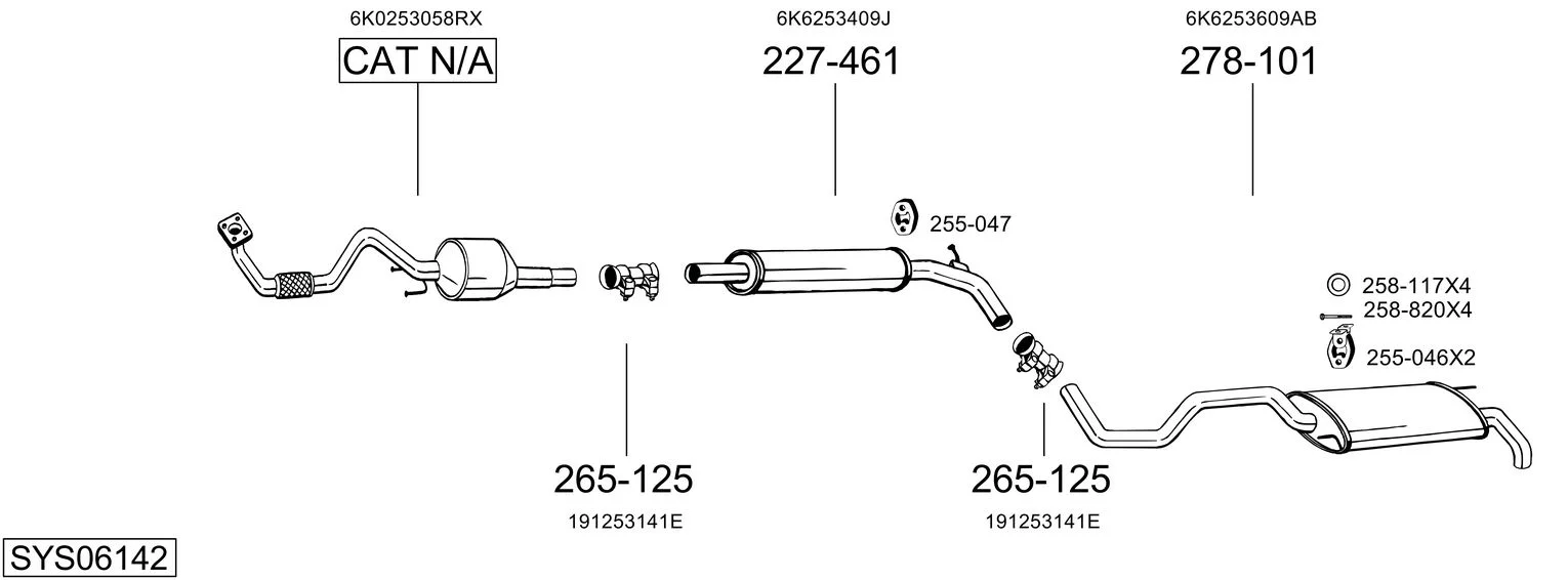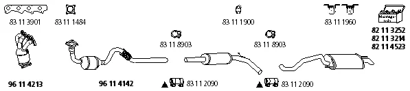 SEAT IBIZA II (6K1) 1.4 i - Výfukový systém - kompletní od 9/1993 do 2/2002, 1389 ccm, 44 kW, 60 hp, ABD, AEX, AKK, AKV, ANW, APQ, AUD, Šikmá zadní část