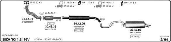 SEAT IBIZA II (6K1) 1.8 i 16V - Výfukový systém - kompletní od 11/1993 do 8/1996, 1781 ccm, 95 kW, 129 hp, ADL, Šikmá zadní část