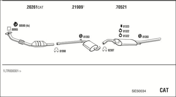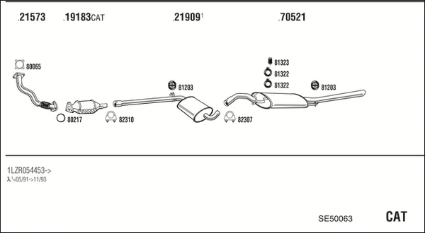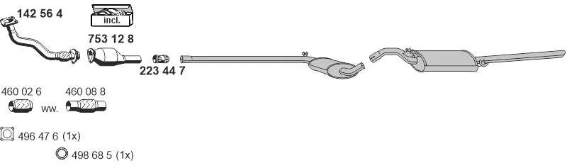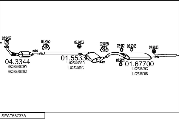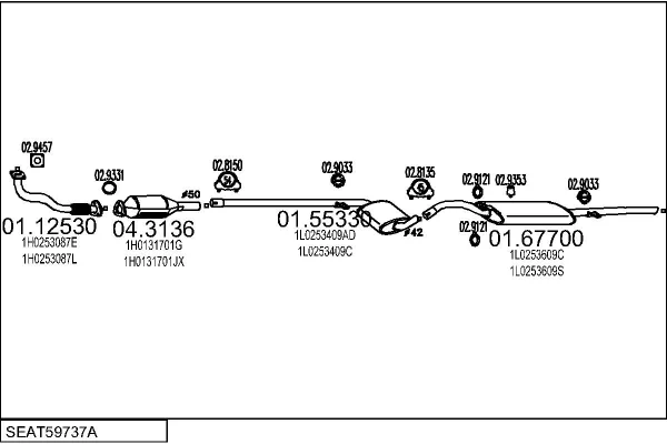 SEAT TOLEDO I (1L2) 1.6 i - Výfukový systém - kompletní od 1/1993 do 3/1999, 1595 ccm, 55 kW, 75 hp, 1F, Šikmá zadní část