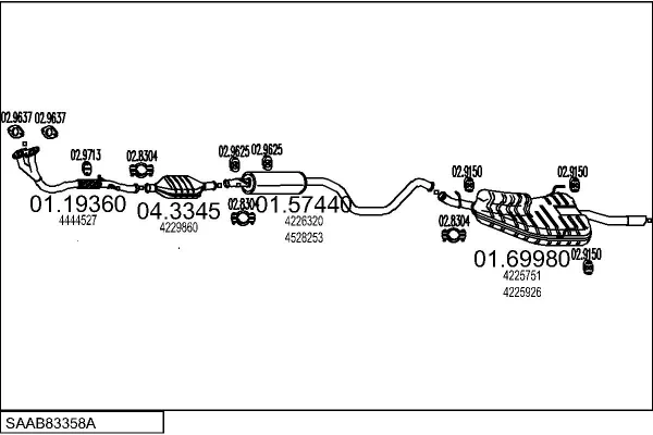 SAAB 900 II kupé 2.0 i - Výfukový systém - kompletní od 12/1993 do 7/1994, 1985 ccm, 98 kW, 133 hp, B206I, kupé