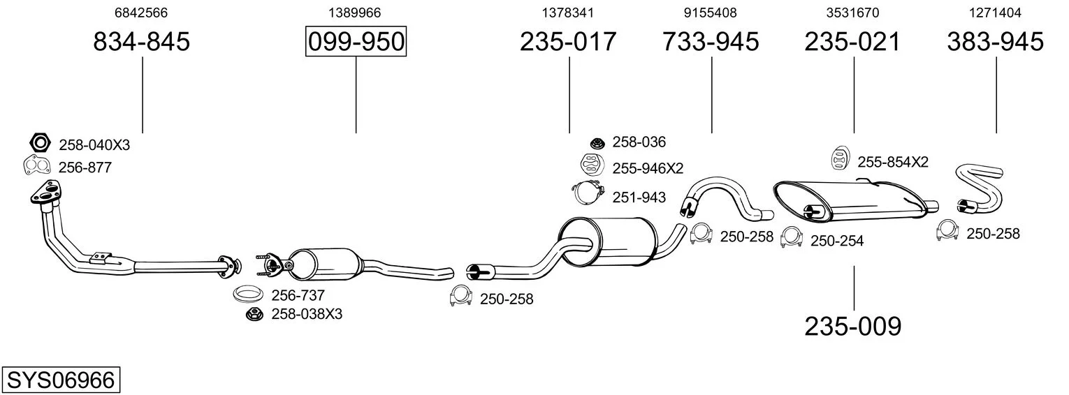 VOLVO 940 II kombi (945) 2.3 - Výfukový systém - kompletní od 8/1994 do 10/1998, 2316 ccm, 96 kW, 131 hp, B 230 FB, kombi