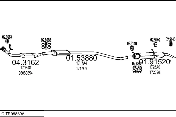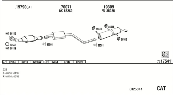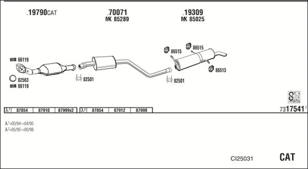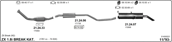 CITROËN ZX Break (N2) 1.8 i - Výfukový systém - kompletní od 10/1993 do 10/1997, 1761 ccm, 74 kW, 101 hp, LFZ (XU7JP), kombi