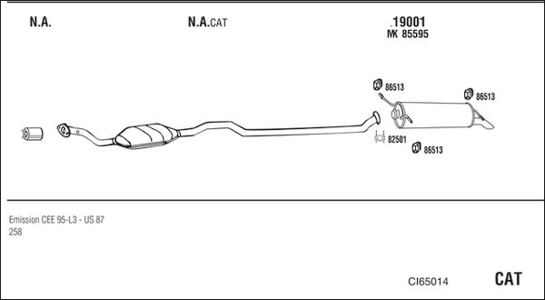 CITROËN XANTIA (X1_, X2_) 1.9 D - Výfukový systém - kompletní od 6/1994 do 1/1998, 1905 ccm, 50 kW, 68 hp, DJZ (XUD9A), Šikmá zadní část