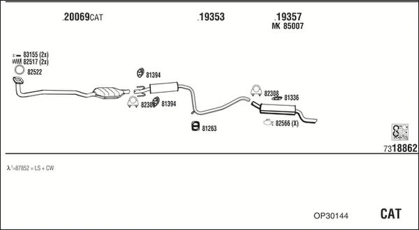 OPEL COMBO Skříňová/velkoprostorová limuzína (71_) 1.2 - Výfukový systém - kompletní od 7/1994 do 10/2001, 1195 ccm, 33 kW, 45 hp, C 12 NZ, X 12 SZ, Skříňová/velkoprostorová limuzína