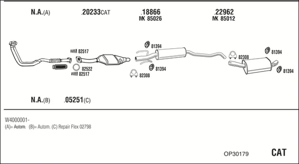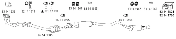 OPEL TIGRA (S93) 1.4 16V (F07) - Výfukový systém - kompletní od 7/1994 do 12/2000, 1389 ccm, 66 kW, 90 hp, X 14 XE, kupé